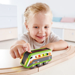 Hape Solar Powered Train is a revolutionary train set engine that is powered by sunlight or a bright internal light. Watch your little one play with it on its own or combine with other railway sets for extra added fun.