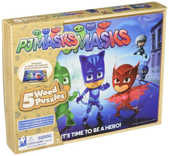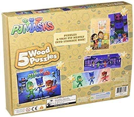 - 5 PJ Masks wood puzzles in 1 handy wood storage box – a great gift for your favorite PJ Masks fan!