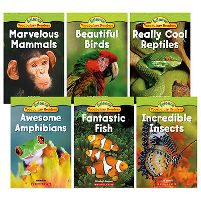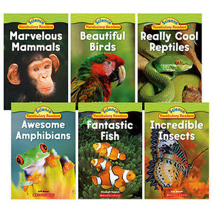 The books include a table of contents, three short chapters, diagrams, captions, a glossary, comprehension questions, and more. Includes: Mammals, Birds, Reptiles, Amphibians, Fish, Insects