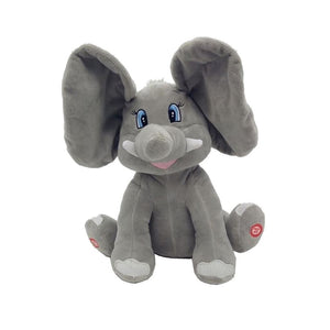 Flappy says, "Peek-a-boo is most fun with you!" Flappy the Elephant is an adorable singing animated plush with two different play modes. Press her left foot to play an interactive game of peek-a-boo, and the right to hear the song "Do Your Ears Hang Low" in a cute child's voice.
